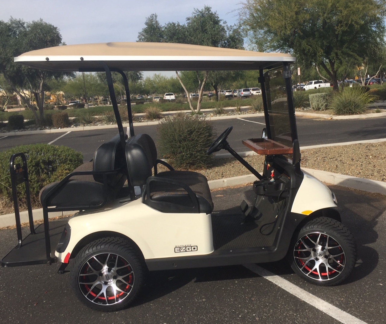 Club Car refurbished with New Batteries (2 year warranty), Newer Charger, New Rims and Tires, New Seats and Upholstery, New Mirrors, and New Tinted Split Windshield.